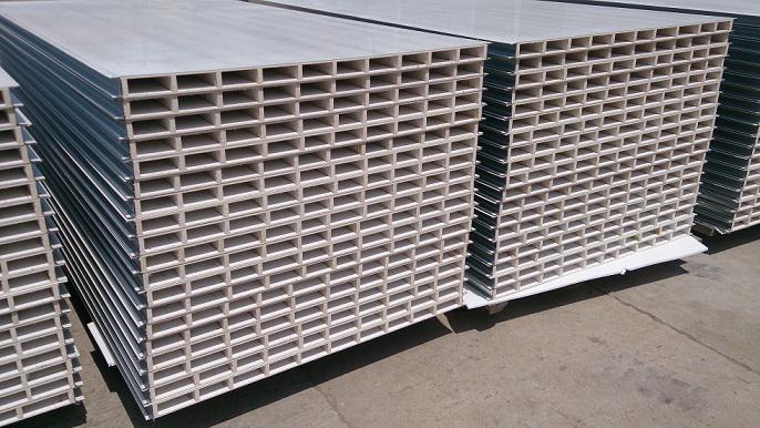 硫氧鎂夾芯板充分發(fā)揮了硫氧鎂復合材料的獨特性能,在防火,防潮,防脫膠,高強度,保溫,隔熱,吸音等方面有著顯著地優(yōu)點及功效。 生產(chǎn)工...